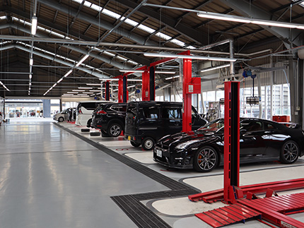 サービススタッフは、定期点検、車検、トラブルの修理など、クルマを常にベストコンディションに保つための整備のほか、カーナビなどカーライフをより楽しくする自動車用品の取付けも行います。高度な技術を駆使した的確な対応により、安全・安心なカーライフをサポートし、お客様の信頼と満足をより深める重要な役割を担っています。 |