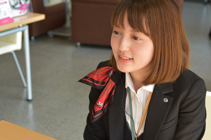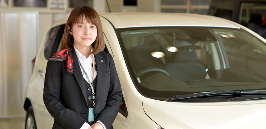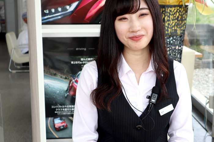 A.学生時代はカフェでアルバイトをした経験から、接客業と事務の両方ができる仕事を探していました。会社説明会で長野日産の社員の方がとてもイキイキしていて私もこんな感じで働きたいと思い応募しました。車のことは全然知らないので、入社前になってとても不安になってしまいましたが、入社後は頼れる先輩に一つずつ教えて頂いて、少しずつですが身についてきたと思っています。