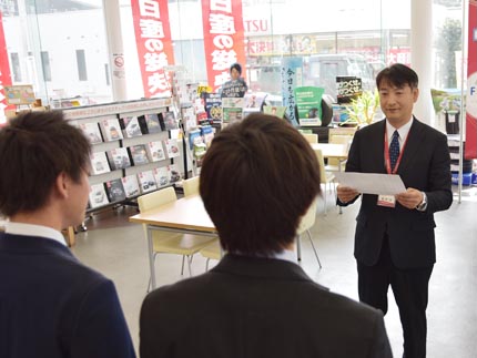 朝礼では本日のご来店のお客様の予定の確認や、車検の引き渡し予定をスタッフ全員で確認します。